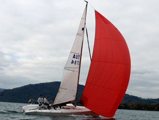 Attersee auf einer Sunbeam 28.1. Den 3. Rang belegten Anton Stader (SCATT) und